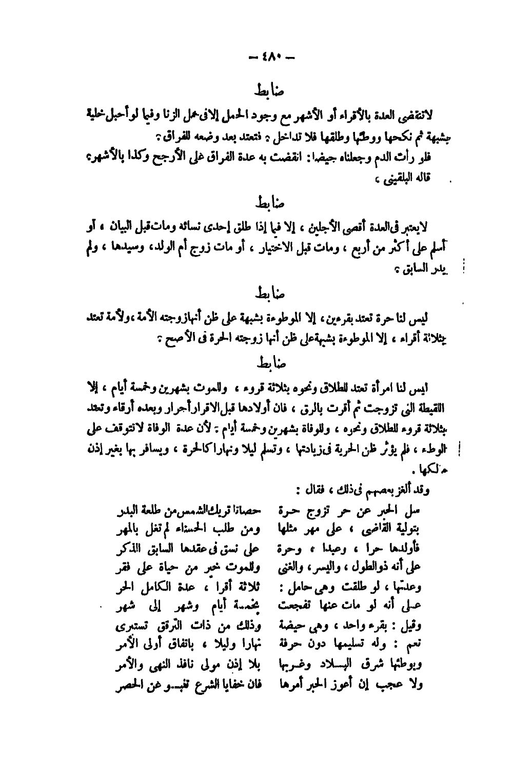 وَلَا عَجَبَ إنْ أَعْوَزَ الْحَبْرُ أَمَرَهَا ... فَإِنَّ خَفَايَا الشَّرْعِ تَنْبُو عَنْ الْحَصْرِ