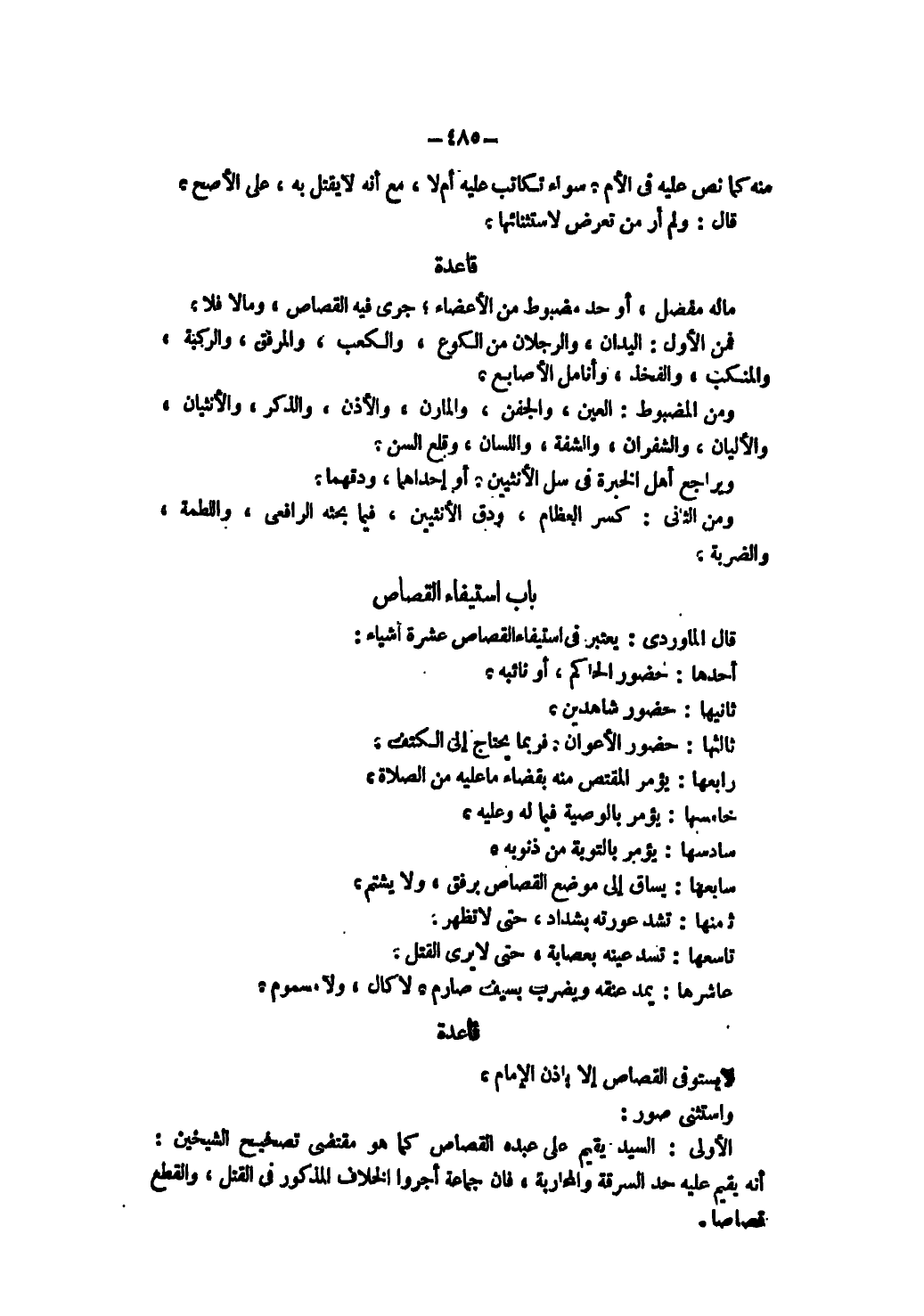 لَا يُسْتَوْفَى الْقِصَاصُ إلَّا بِإِذْنِ الْإِمَامِ. وَاسْتُثْنِيَ صُوَرٌ: