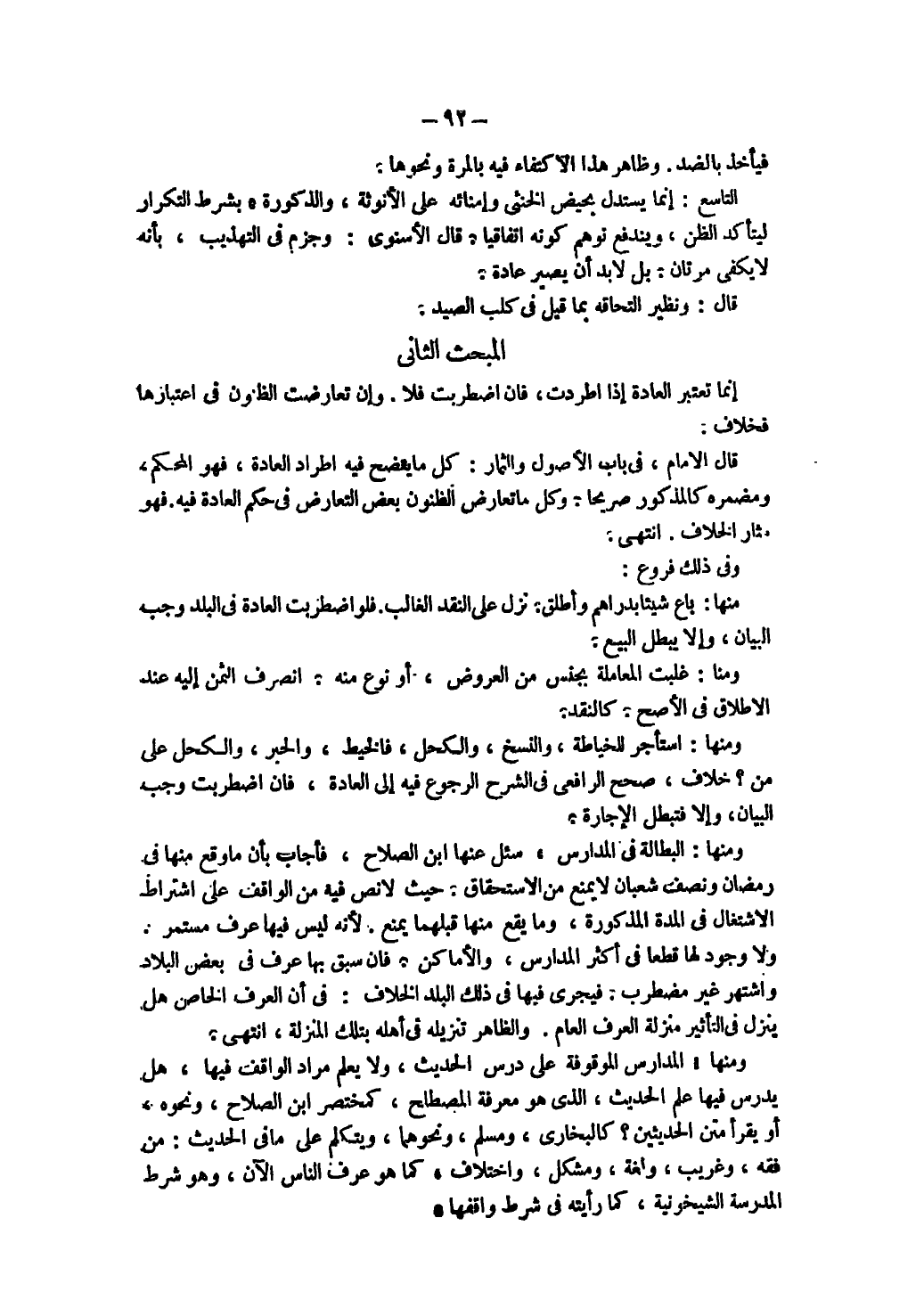 [الْمَبْحَثُ الثَّانِي: تُعْتَبَرُ الْعَادَةُ إذَا اطَّرَدَتْ فَإِن اضْطَرَبَتْ فَلَا]