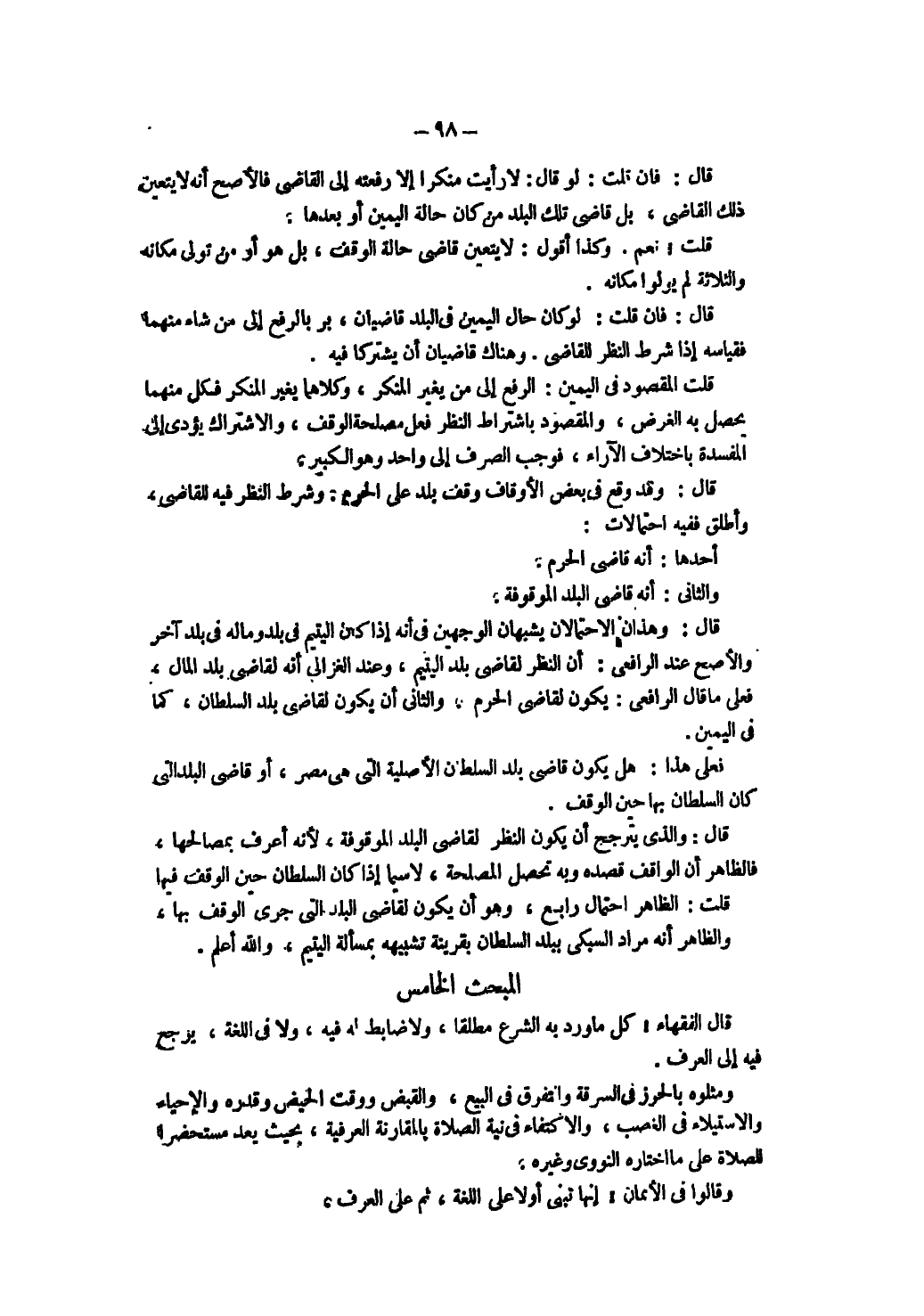 الْمَبْحَثُ الْخَامِسُ قَالَ الْفُقَهَاءُ: كُلُّ مَا وَرَدَ بِهِ الشَّرْعُ مُطْلَقًا، وَلَا ضَابِطَ لَهُ فِيهِ، وَلَا فِي اللُّغَةِ، يُرْجَعُ فِيهِ إلَى الْعُرْفِ.
