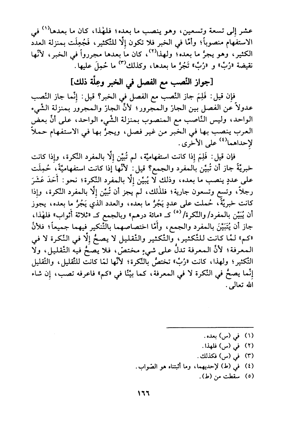 عشر إلى تسعة وتسعين، وهو ينصب ما بعده؛ فلهذا، كان ما بعدها1 في الاستفهام منصوبًا؛ وأما في الخبر فلا تكون إلا للتكثير، فجُعلت بمنزلة العدد الكثير، وهو يجرُّ ما بعده؛ ولهذا2، كان ما بعدها مجرروًا في الخبر، لأنها نقيضة "رُبَّ" و"رُبَّ" تجر ما بعدها، وكذلك3 ما حُمل عليها.