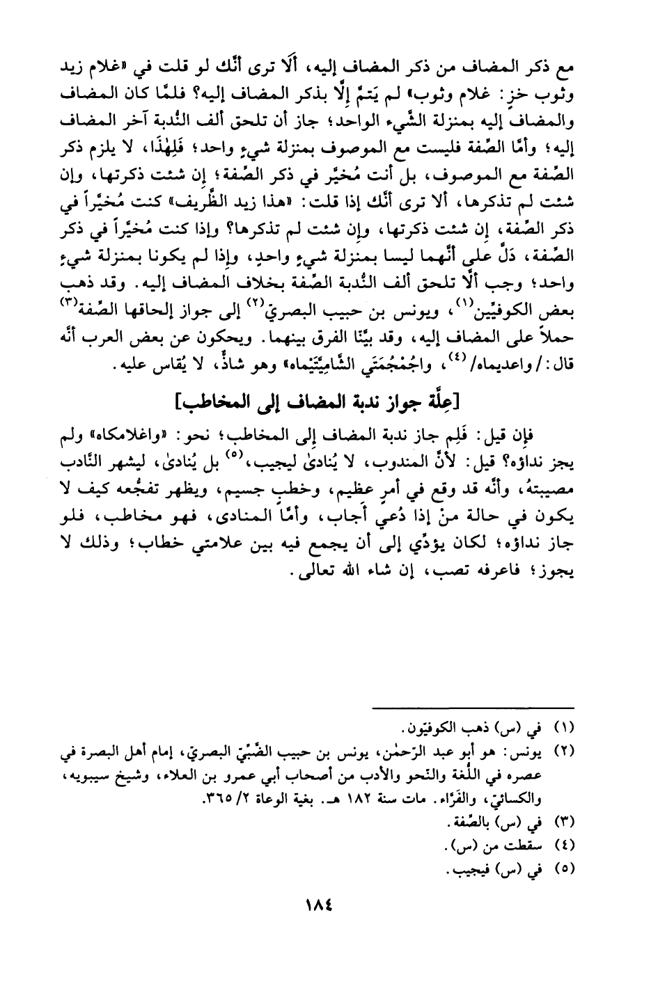 2 يونس: هو أبو عبد الرحمن، يونس بن حبيب الضبي البصري، إمام أهل البصرة في عصره في اللغة والنحو والأدب من أصحاب أبي عمرو بن العلاء، وشيخ سيبويه، والكسائي، والفَرَّاء. مات سنة 182هـ. بغية الوعاء 365/2.