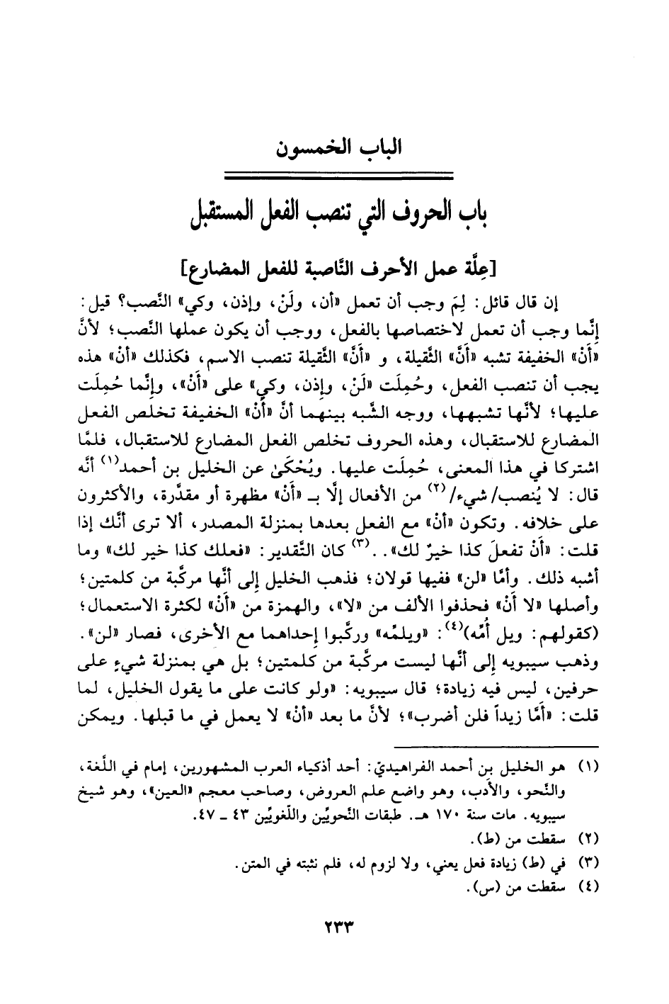 الباب الخمسون: باب الحروف التي تنصب الفعل المستقبل