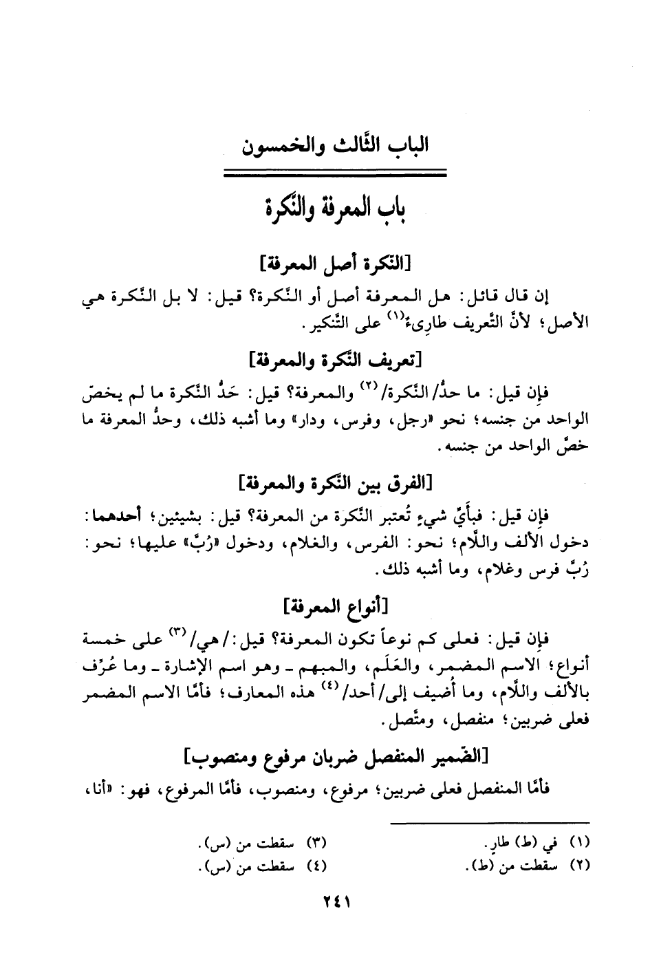 الباب الثالث والخمسون: باب المعرفة والنكرة