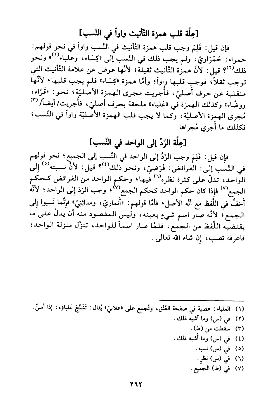 [علة قلب همزة التأنيث واوًا في النسب]