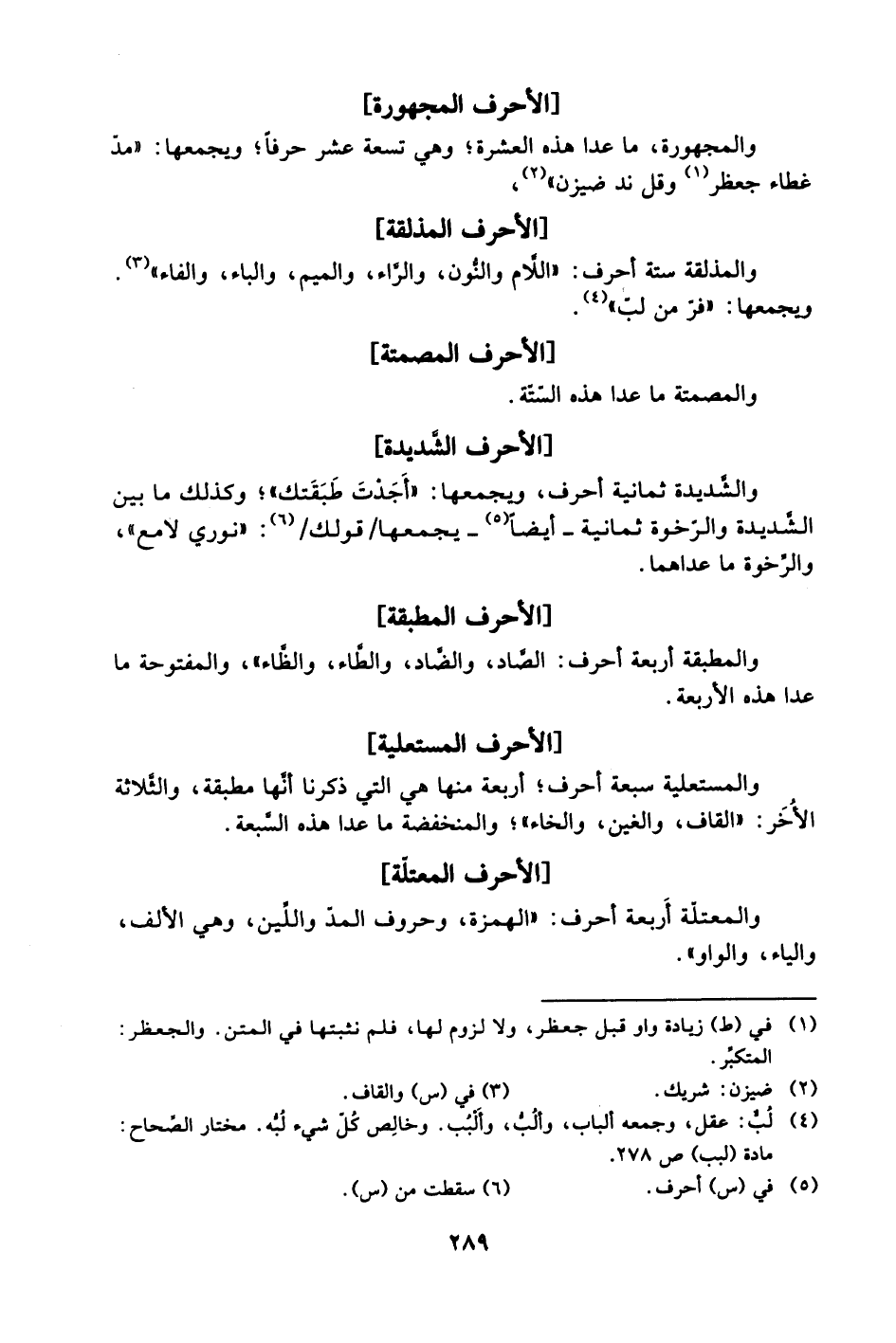 والمصمتة ما عدا هذه الستة.