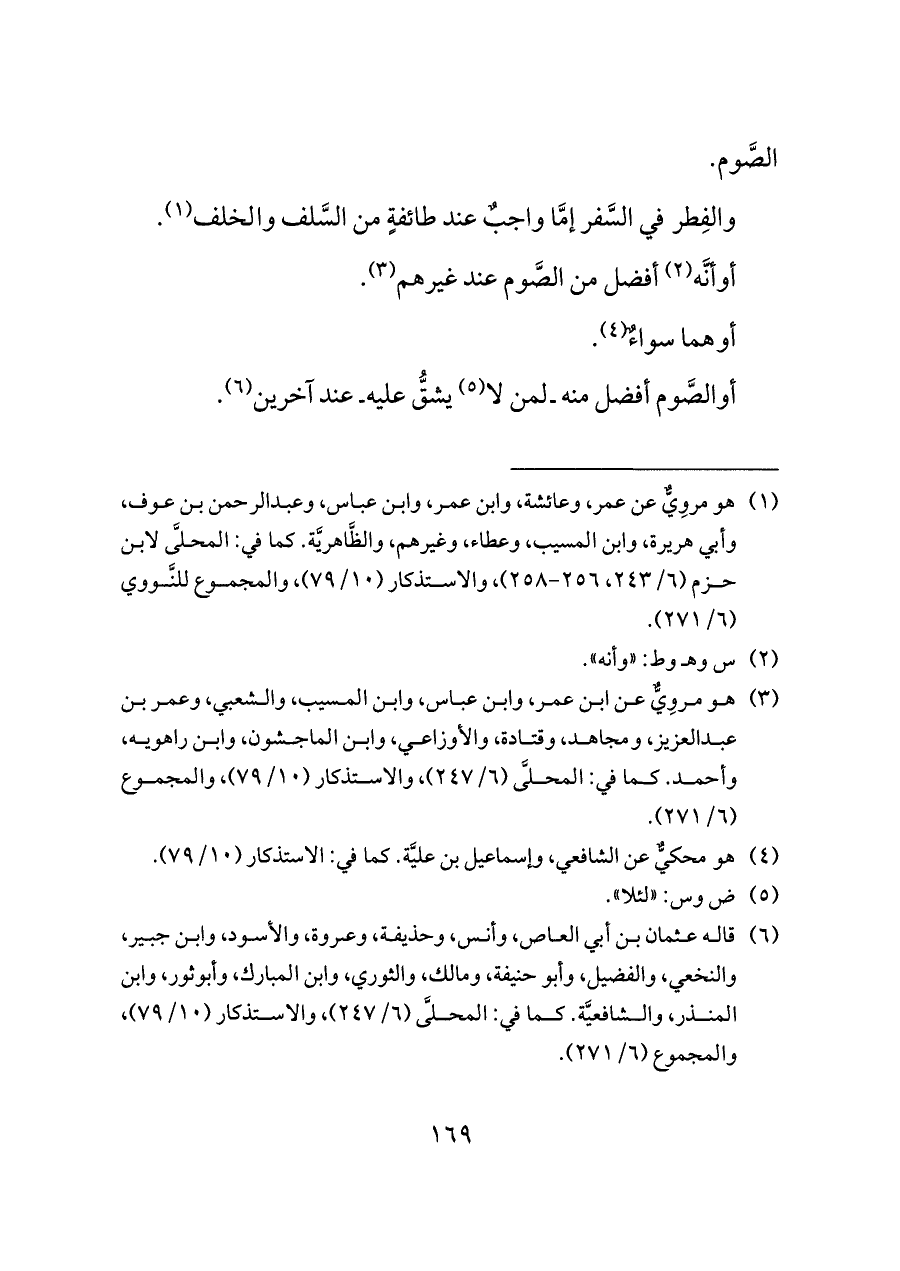 (¬١) هو مروِيٌّ عن عمر، وعائشة، وابن عمر، وابن عباس، وعبدالرحمن بن عوف، وأبي هريرة، وابن المسيب، وعطاء، وغيرهم، والظَّاهريَّة. كما في: المحلَّى لابن حزم (٦/ ٢٤٣، ٢٥٦ - ٢٥٨)، والاستذكار (١٠/ ٧٩)، والمجموع للنَّووي (٦/ ٢٧١).