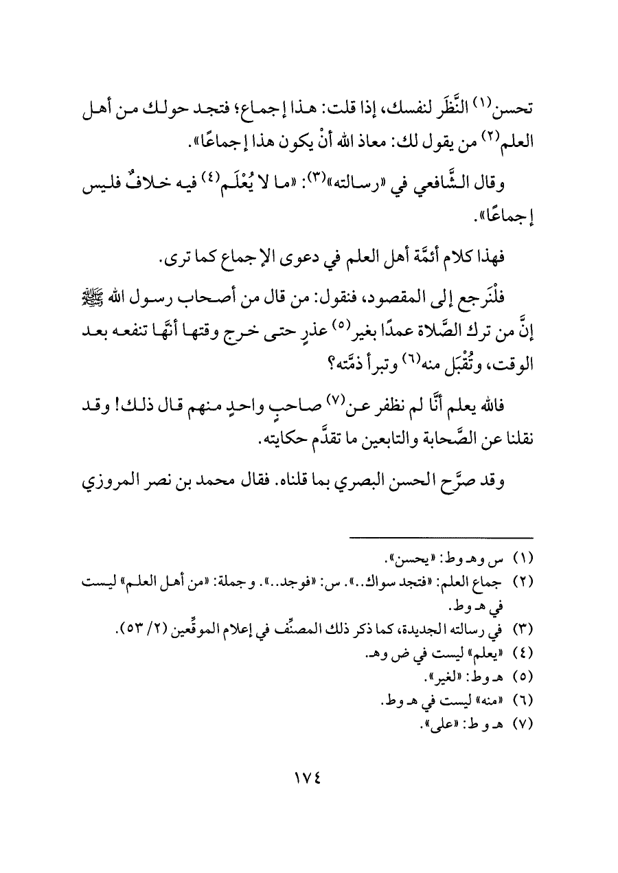 وقد صرَّح الحسن البصري بما قلناه. فقال محمد بن نصر المروزي