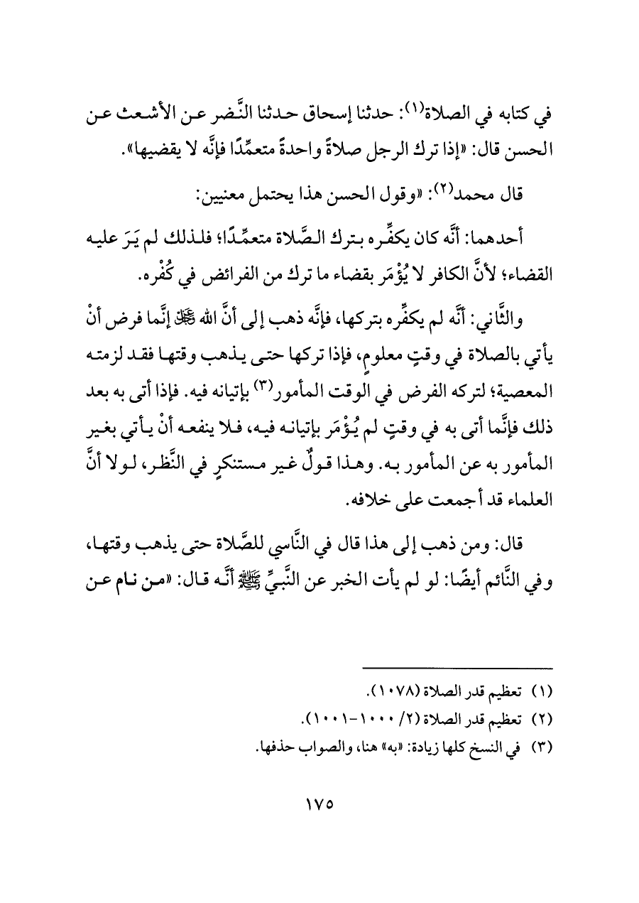 (¬١) تعظيم قدر الصلاة (١٠٧٨).