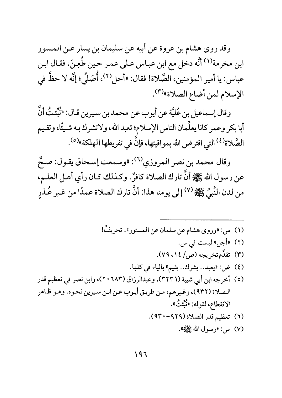 (¬٥) أخرجه ابن أبي شيبة (٣١٣٢)، وعبدالرزاق (٢٠٦٨٣)، وابن نصر في تعظيم قدر الصلاة (٩٣٢)، وغيرهم، من طريق أيوب عن ابن سيرين نحوه. وهو ظاهر الانقطاع، لقوله: "نُبِّئتُ".