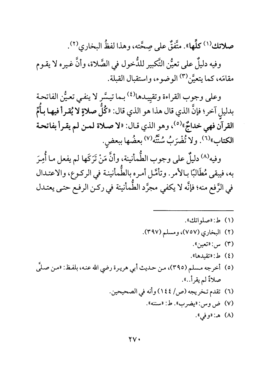 (¬٥) أخرجه مسلم (٣٩٥)، من حديث أبي هريرة رضي الله عنه، بلفظ: «من صلَّى صلاةً لم يقرأ .. ».