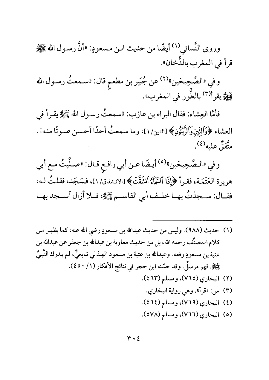 وروى النَّسائي (¬١) أيضًا من حديث ابن مسعودٍ: «أنَّ رسول الله - صلى الله عليه وسلم - قرأ في المغرب بالدُّخان».