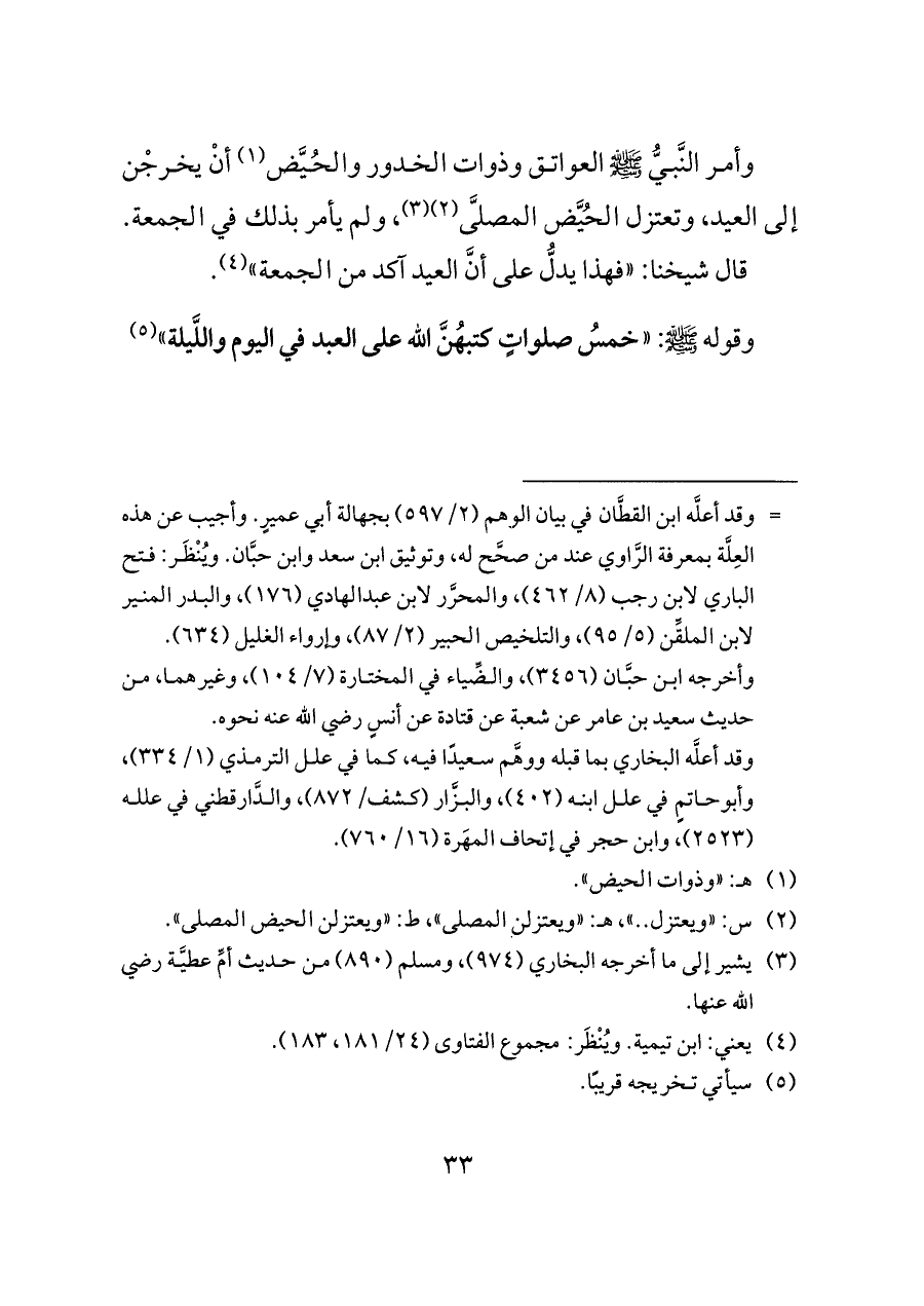 (¬٣) يشير إلى ما أخرجه البخاري (٩٧٤)، ومسلم (٨٩٠) من حديث أمِّ عطيَّة رضي الله عنها.