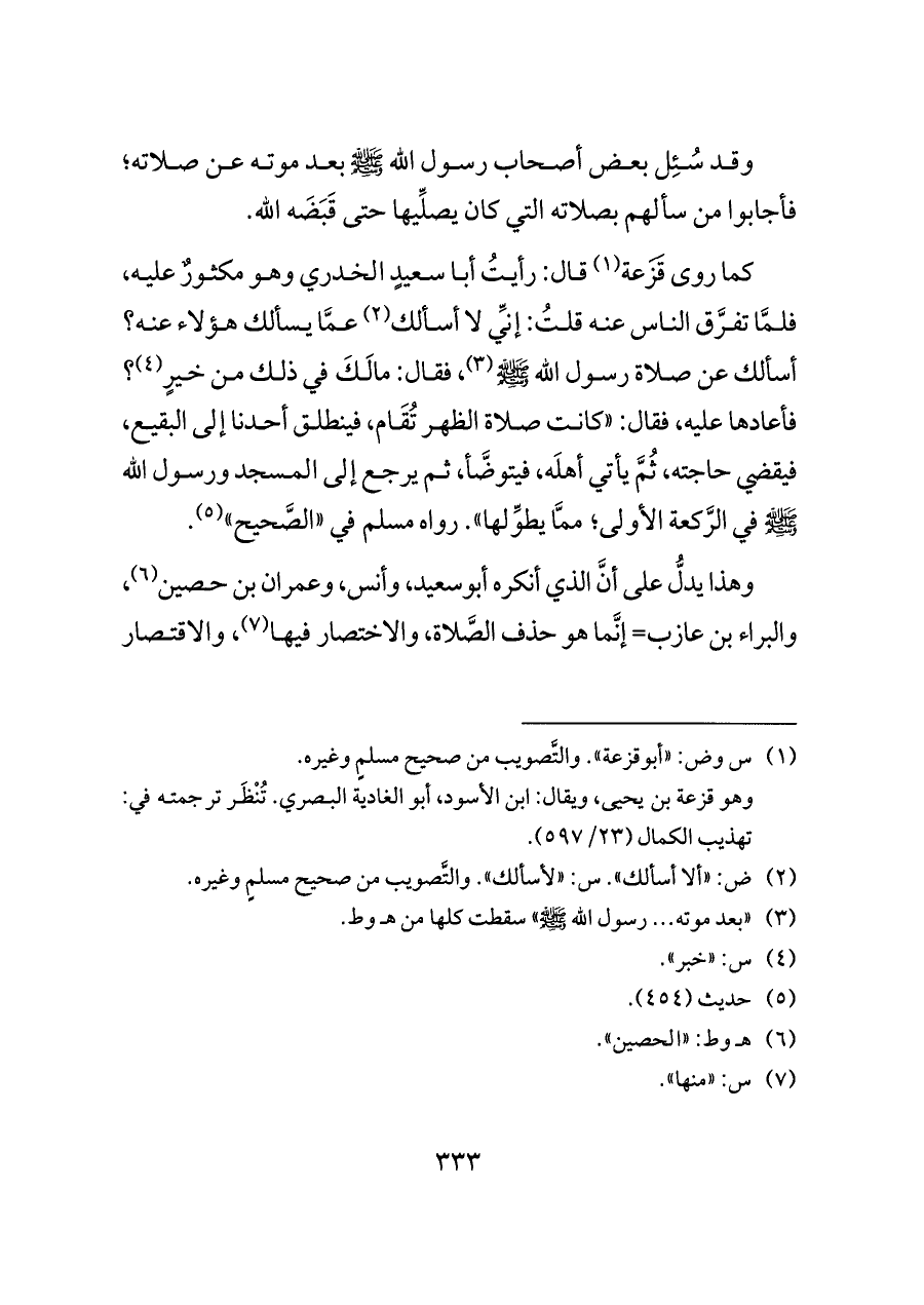 وهذا يدلُّ على أنَّ الذي أنكره أبوسعيد، وأنس، وعمران بن حصين (¬٦)، والبراء بن عازب= إنَّما هو حذف الصَّلاة، والاختصار فيها (¬٧)، والاقتصار