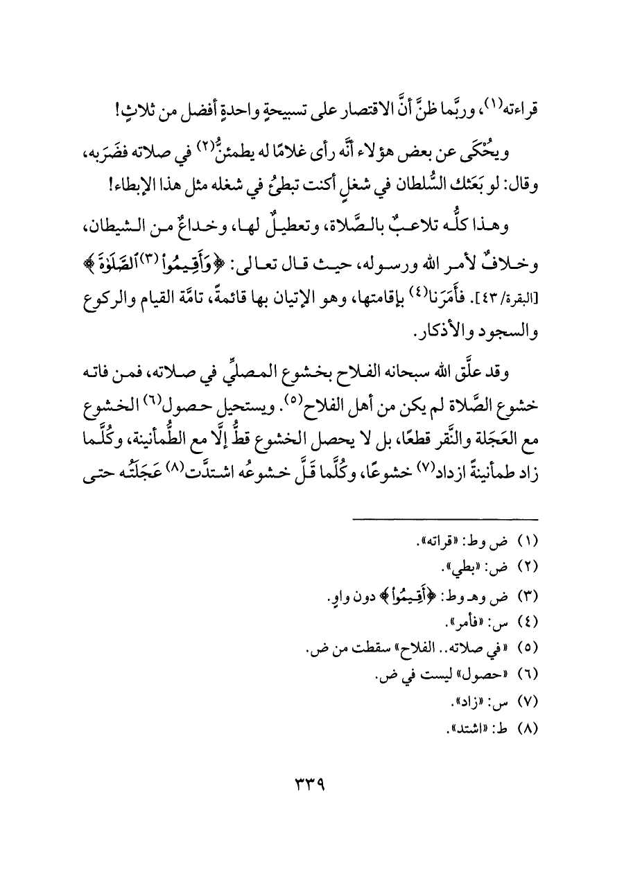 (¬٥) «في صلاته .. الفلاح» سقطت من ض.