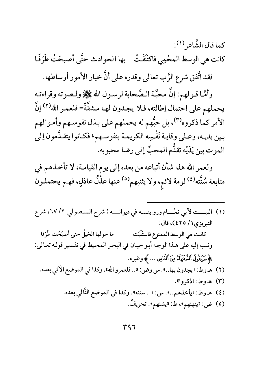 وأمَّا قولهم: إنَّ محبَّة الصَّحابة لرسول الله - صلى الله عليه وسلم - ولصوته وقراءته يحملهم على احتمال إطالته، فلا يجدون لها مشقَّةً= فلعمر الله (¬٢) إنَّ الأمر كما ذكروه (¬٣)، بل حبُّهم له يحملهم على بذل نفوسهم وأموالهم بين يديه، وعلى وقاية نَفْسِه الكريمة بنفوسهم؛ فكانوا يتقدَّمون إلى الموت بين يَدَيْه تقدُّم المحبِّ إلى رضا محبوبه.