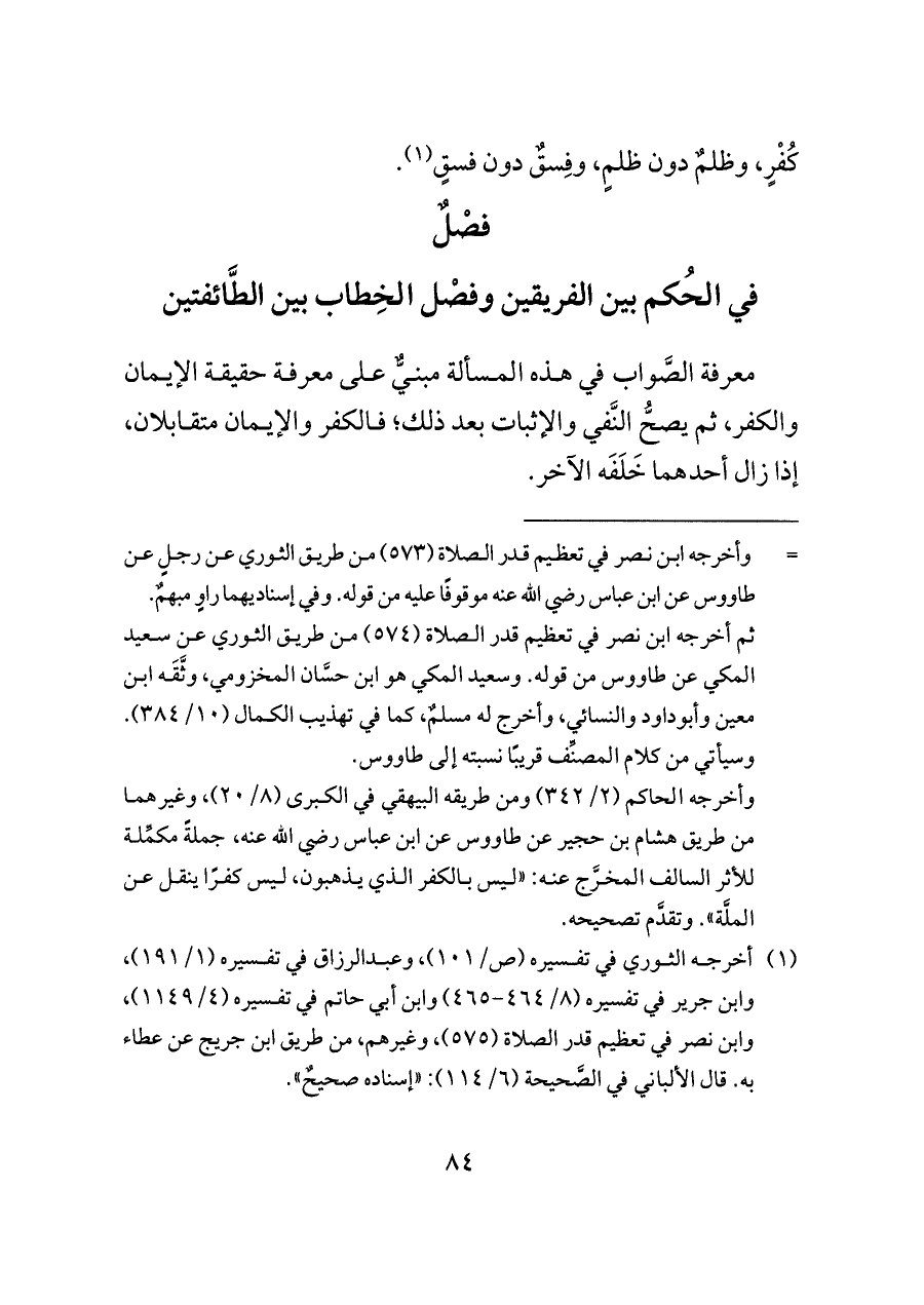 كُفْرٍ، وظلمٌ دون ظلمٍ، وفِسقٌ دون فسقٍ (¬١).