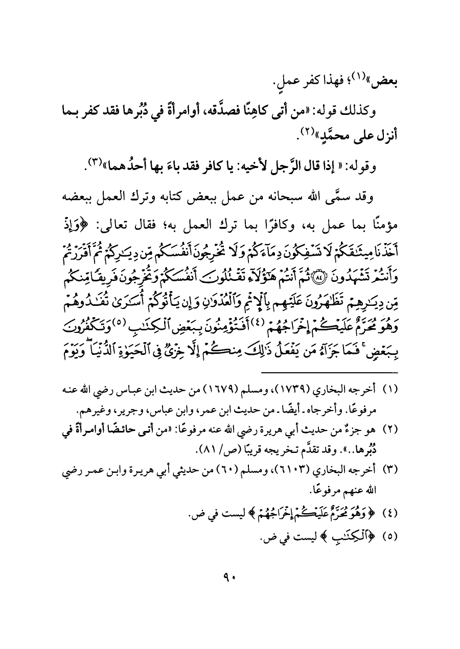 بعض" (¬١)؛ فهذا كفر عملٍ.