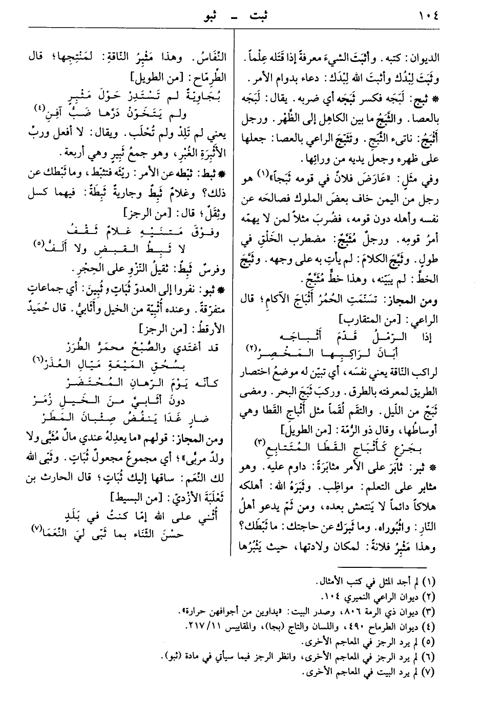 ونفروا إلى العدو ثبات وثبين أي جماعات متفرقة. وعنده أثبية من الخيل وأثابي. قال حميد الأرقط: