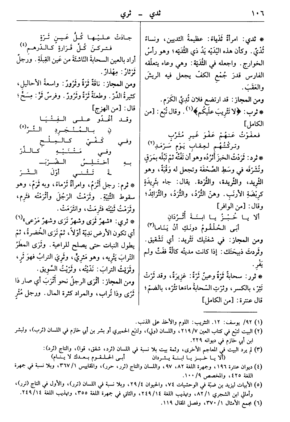 ومن المجاز: أثرى الرجل نحو أترب أي صار ذا ثرىً وذا تراب، والمراد كثرة المال. ورجل مثر