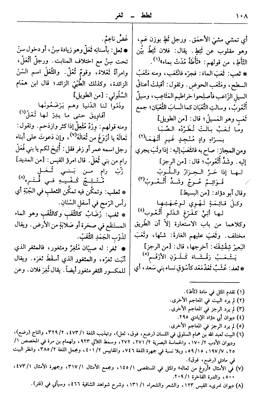 ومنه قولهم: ورد مثعل إذا كثر وازدحم. وتقلو: تعاله، يا أروغ من ثعاله. وإن دعوت على أبناء رجل اسمه عمر أو زفر فقل: أتيح لكم يا بني فعل، رام من بني ثعل. قال امرؤ القيس: