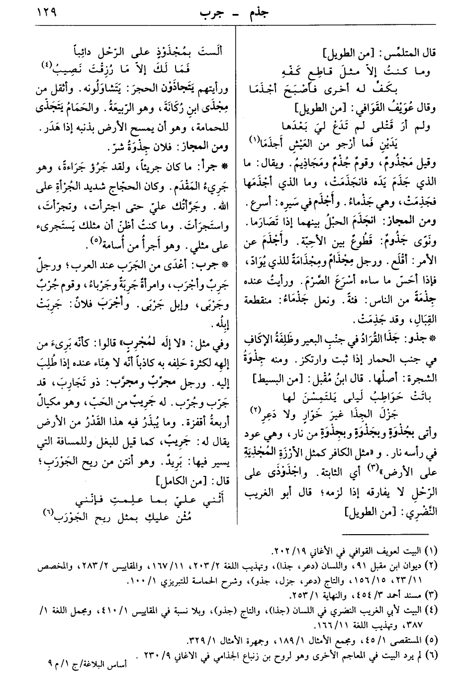 وما كنت إلاّ مثل قاطع كفّه ... بكفّ له أخرى فأصبح أجذما