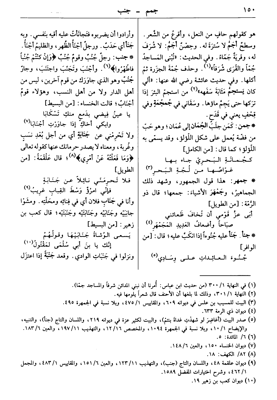 رجل جنب وقوم جنب " وإن كنتم جنباً فاطّهّروا " وأجنب وتجنّب واجتنب، وجار جنب وهو الذي جاورك من قوم آخرين، لي من أهل الدار ولا من أهل النسب، وهؤلاء قوم أجناب. قالت الخنساء: