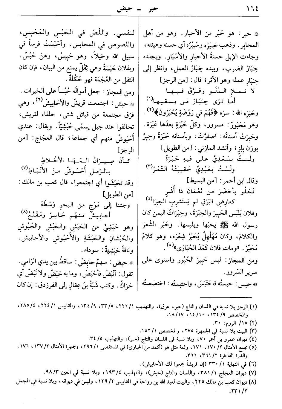 وفلان يلبس الحبير والحبرة، وحبرات اليمن كان رسول الله صَلَّى اللهُ عَلَيْهِ وَسَلَّمَ يحبها ويلبسها. وحبر الشعر والكلام، وكان مهلهل يحبر شعره، وهو كلام محبر. " ومات فلان كمد الحبارى ".