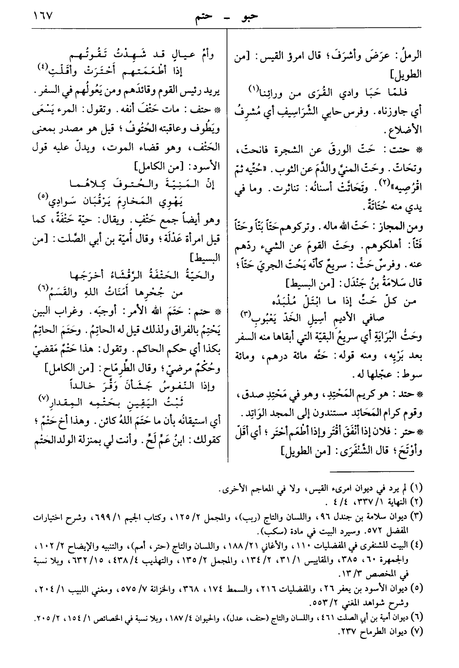 وهو أيضاً جمع حتف. ويقال: حية حتفة، كما قيل امرأة عدلة. وقال أمية بن أبي الصلت: