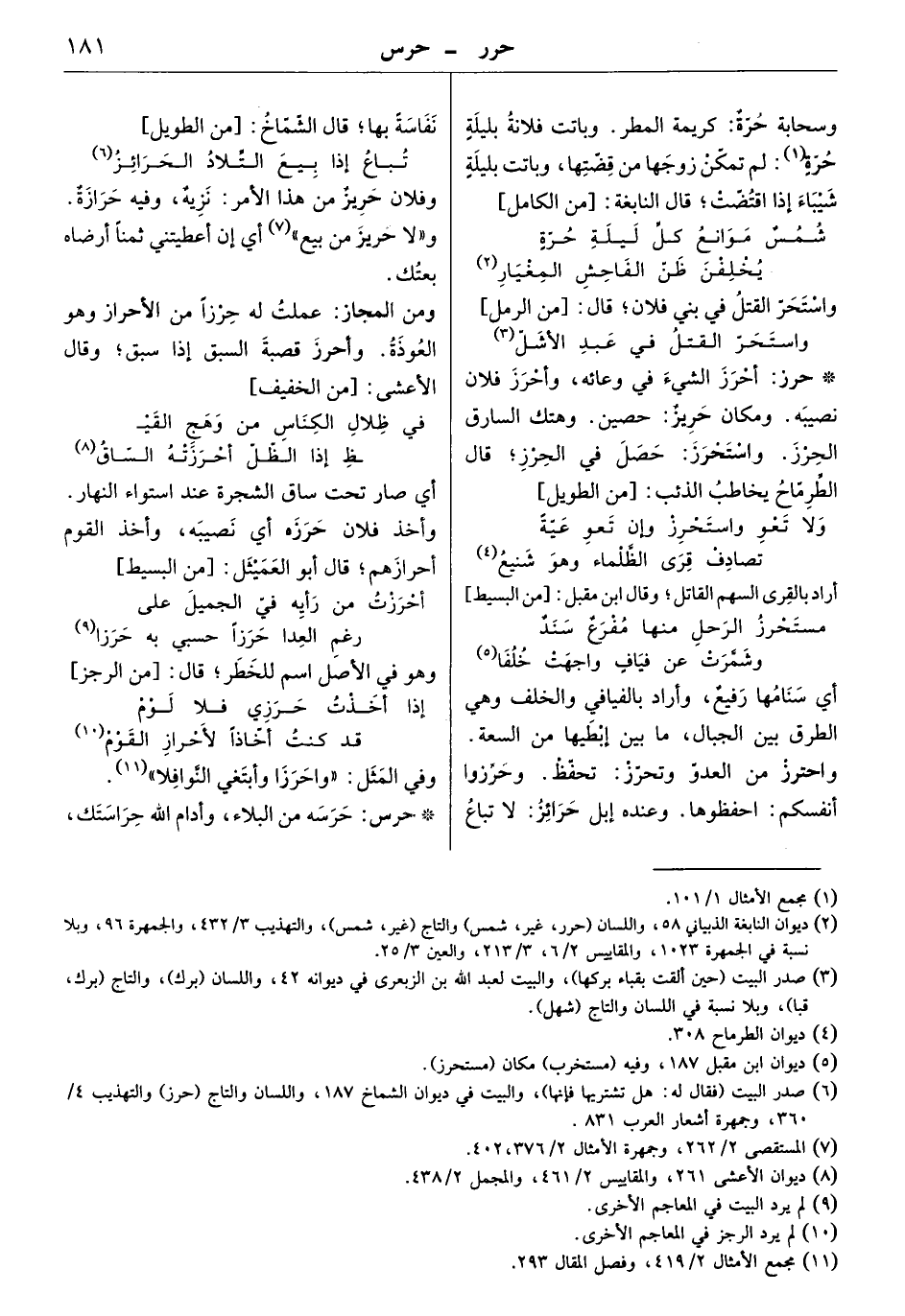 أي صار تحت ساق الشجرة عند استواء النهار. وأخذ فلان حرزه أي نصيبه، وأخذ القوم أحرازهم قال أبو العميثل: