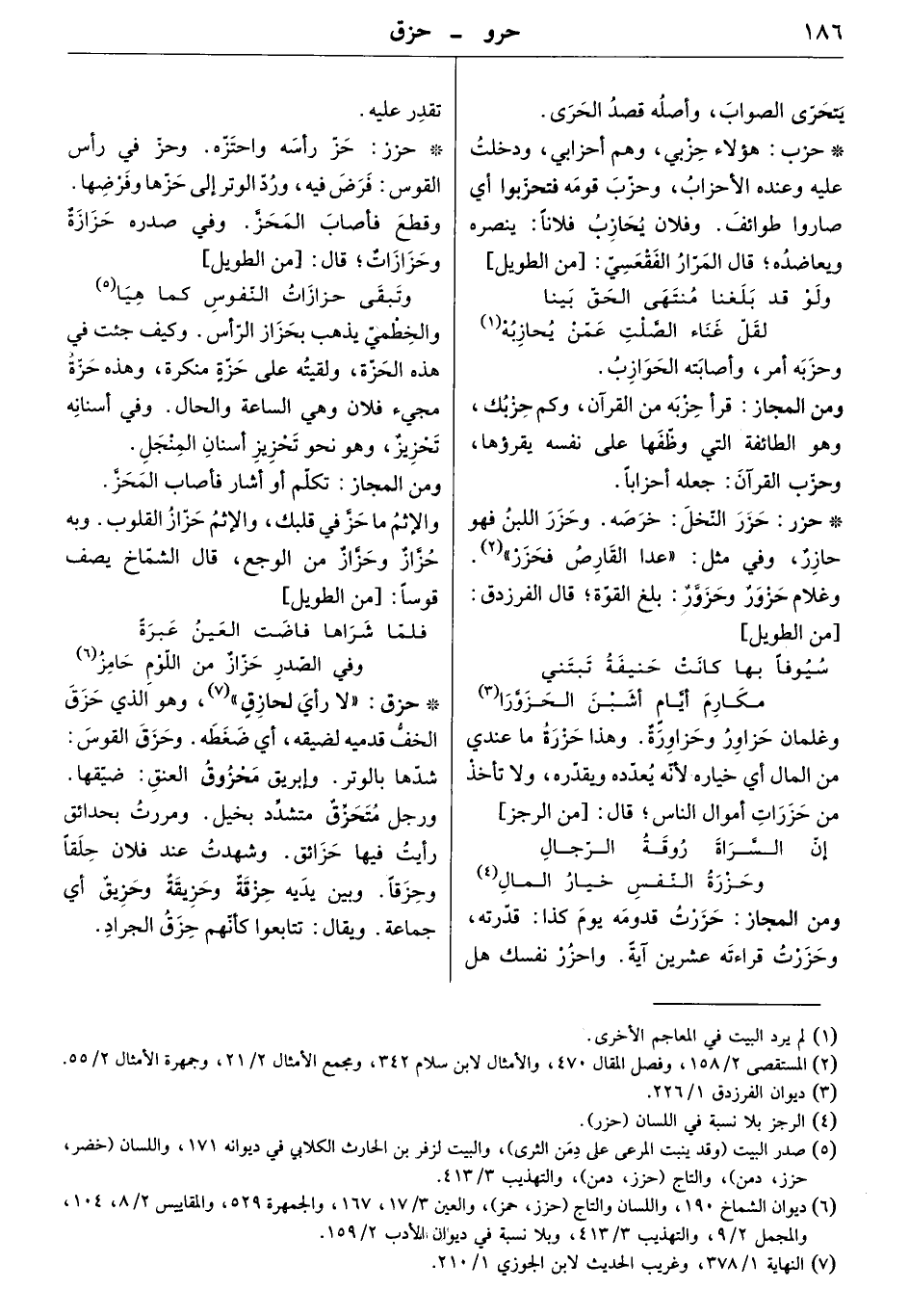 هؤلاء حزبي، وهم أحزابي، ودخلت عليه وعنده الأحزاب، وحزب قومه فتحزبوا أي صاروا طوائف. وفلان يحازب فلاناً: ينصره ويعاضده. قال المرار الفقعسيّ: