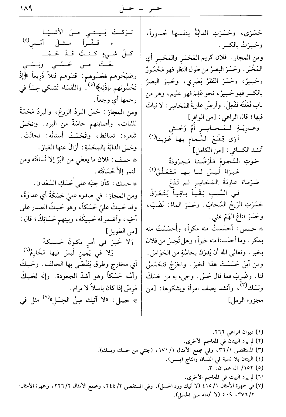 وصبحوهم فحسوهم: قتلوهم قتلاً ذريعاً " إذ تحسونهم بإذنه ". والنفساء تشتكي حساً في رحمها أي وجعاً.