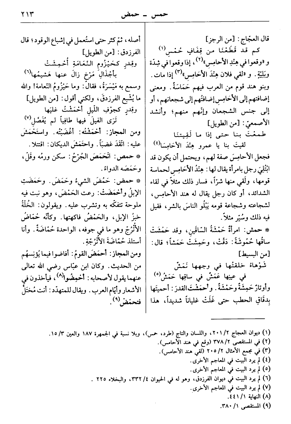 فجعل الأحامس صفة لهم، ويحتمل أن يكون قد ابتلي رجل بامرأة يقال لها: هند الأحامس لحماسة قومها، ولقي منها شراً فسار ذلك مثلاً في لقاء الشدائد، أو كان رجل يقال له هند الأحامس، لشجاعته وشجاعة قومه يبلو الناس بالشر، فقيل. فيه ذلك وسير مثلاً.