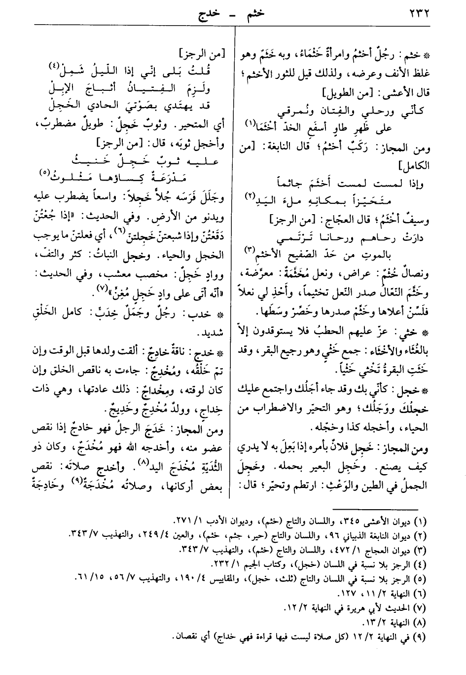 ومن المجاز: خدج الرجل فهو خادج إذا نقص عضو منه، وأخدجه الله فهو مخدج، وكان ذو الثدية مخدج اليد. وأخدج صلاته: نقص بعض أركانها، وصلاته مخدجة وخادجة