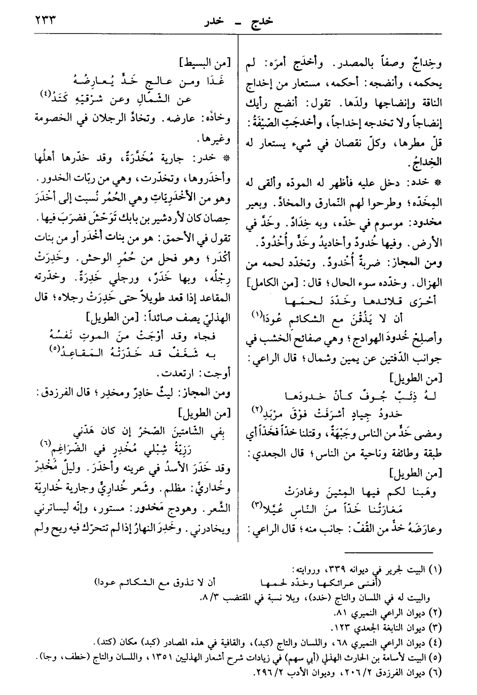 ومضى خد من الناس وجبهة، وقتلنا خدّاً فخدا أي طبقة وطائفة وناحية من الناس. قال الجعدي: