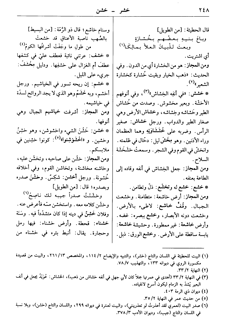 في أنفه الخشاش، وفي أنوفهم الأخشة. وبعير مخشوش. وصدت من خشاش الطير، وخشاش الأرض وهي صغار الطير والدواب. ورجل خشاش: صغير الرأس. وضربه على خششاويه وهما العظمان وراء الأذنين. وهو مخش ليل: دخال في ظلمته. وانخش في القوم وفي الشجر. وسمعت خشخشة السلاح.
