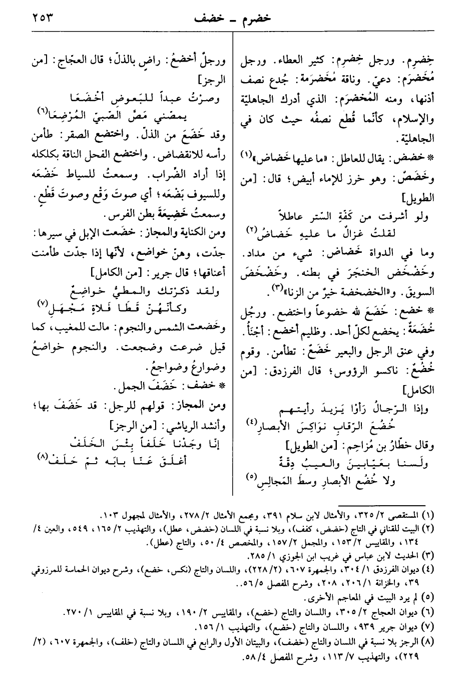 ومن الكناية والمجاز: خضعت الإبل في سيرها: جدّت، وهن خواضع، لأنها إذا جدت طأمنت أعناقها. قال جرير: