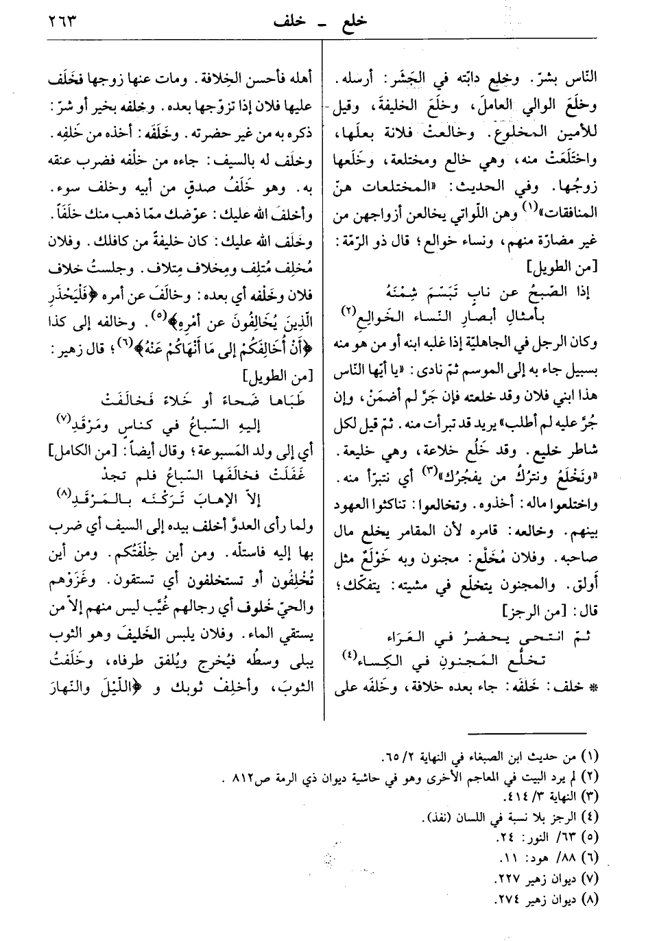 ولما رأى العدو أخلف بيده إلى السيف أي ضرب بها إليه فاستله. ومن أين خلفتكم. ومن أين تخلفون أو تستخلفون أي تستقون. وغزوهم والحيّ خلوف أي رجالهم غيب ليس منهم إلا من يستقي الماء. وفلان يلبس الخليف وهو الثوب يبلي وسطه فيخرج ويلفق طرفاه، وخلفت الثوب، وأخلف ثوبك و" الليل والنهار