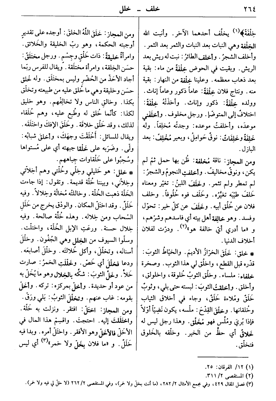 خلفةً " يخلف أحدهما الآخر. وأثبت الله الخلفة وهي النبات بعد النبات والثمر بعد الثمر. وأخلف الشجر. وأخلف الطائر: نبت له ريش بعد الريش. وبقيت في الحوض خلفةٌ من ماء: بقية بعد ذهاب معظمه. وعلينا خلفة من النهار. بقية منه. ونتاج فلان خلفة: عاماً ذكرو وعاماً إناث. وولده خلفة: ذكور وإناث. وأخذته خلفة: اختلاف إلى المتوضّأ. ورجل مخلوف. وأخلفني موعده، وأخلفت موعده: وجدته مخلفاً. وله خلفة وخلفات: نوق حوامل، وبعير مخلف: بعد البازل.