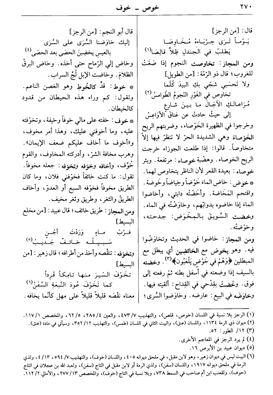 ومن المجاز: طريق خائف. قال عبيد: