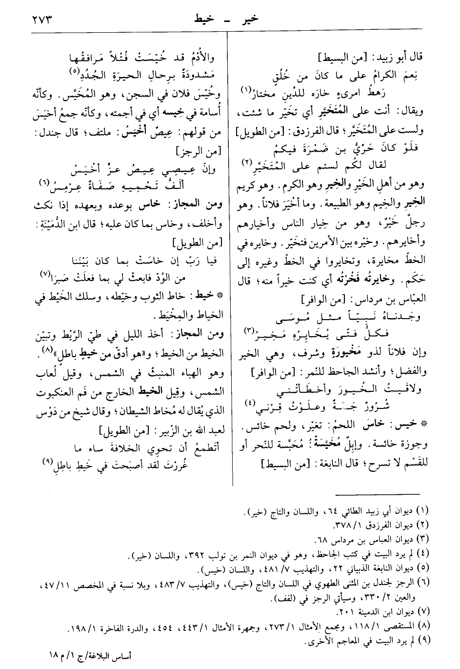 وهو من أهل الخير والخير وهو الكرم. وهو كريم الخير والخيم وهو الطبيعة. وما أخير فلاناً وهو رجل خير، وهو من خيار الناس وأخيارهم وأخايرهم. وخيّره بين الأمرين فتخير. وخايره في الخط مخايرة، وتجخايروا في الخط وغيره إلى حكم. وخايرته فخرته أي كنت خيراً منه. قال العباس بن مرداس: