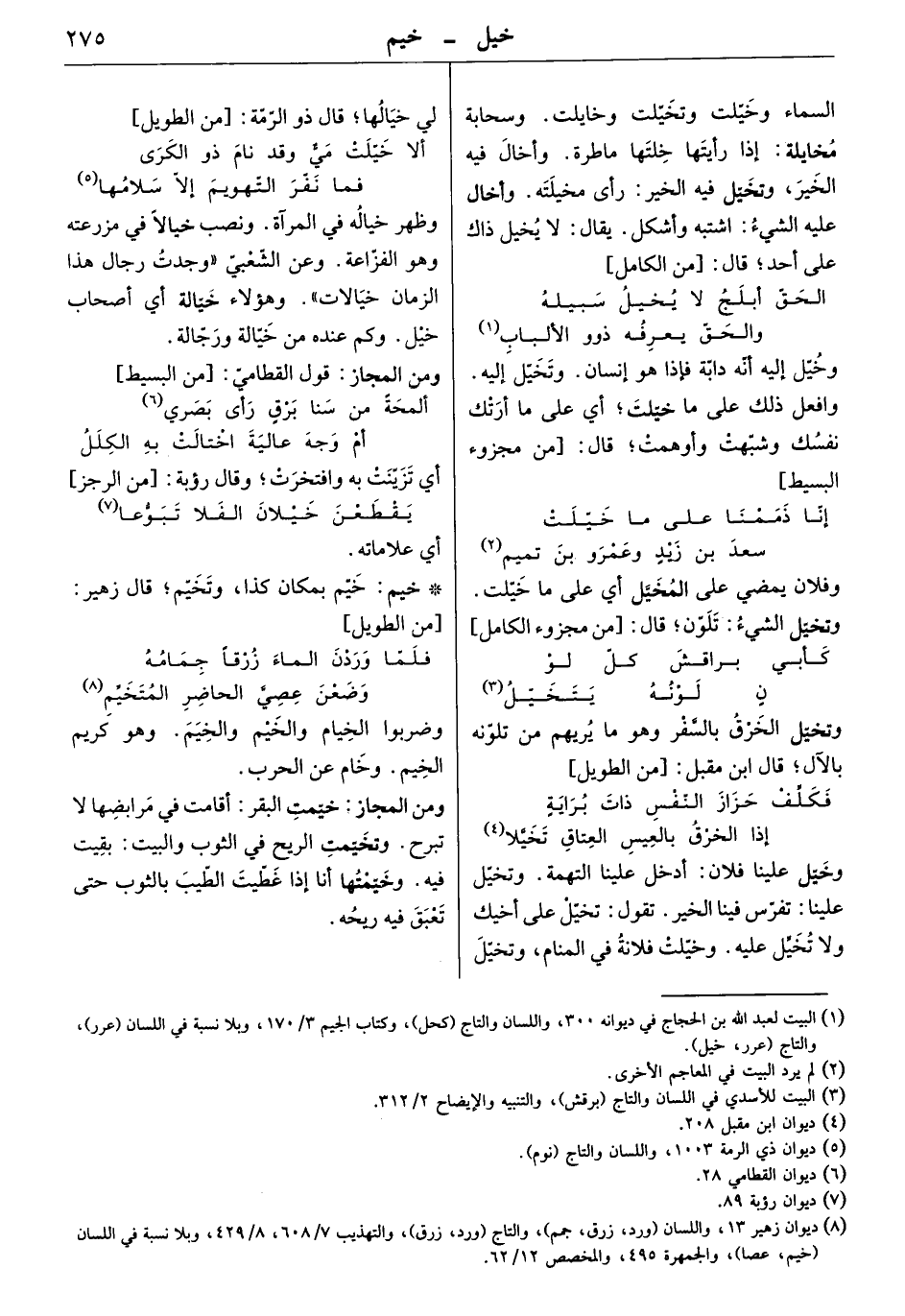 وظهر خياله في المرآة. ونصب خيالاً في مزرعته وهو الفزاعة. وعن الشعبيّ " وجدت رجال هذا الزمان خيالات " وهؤلاء خيالة أي أصحاب خيل. وكم عنده من خيّالة ورجّالة.