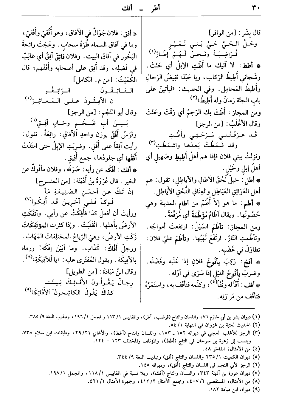 فلان جوال في الآفاق، وهو أفقي وأفقي، وما في آفاق السماء طرة سحاب، وعجت رائحة البخور في آفاق البيت. وفلان فائق آفق أي غالب في فضله، وقد أفق على أصحابه وأفقهم. قال الكميت: