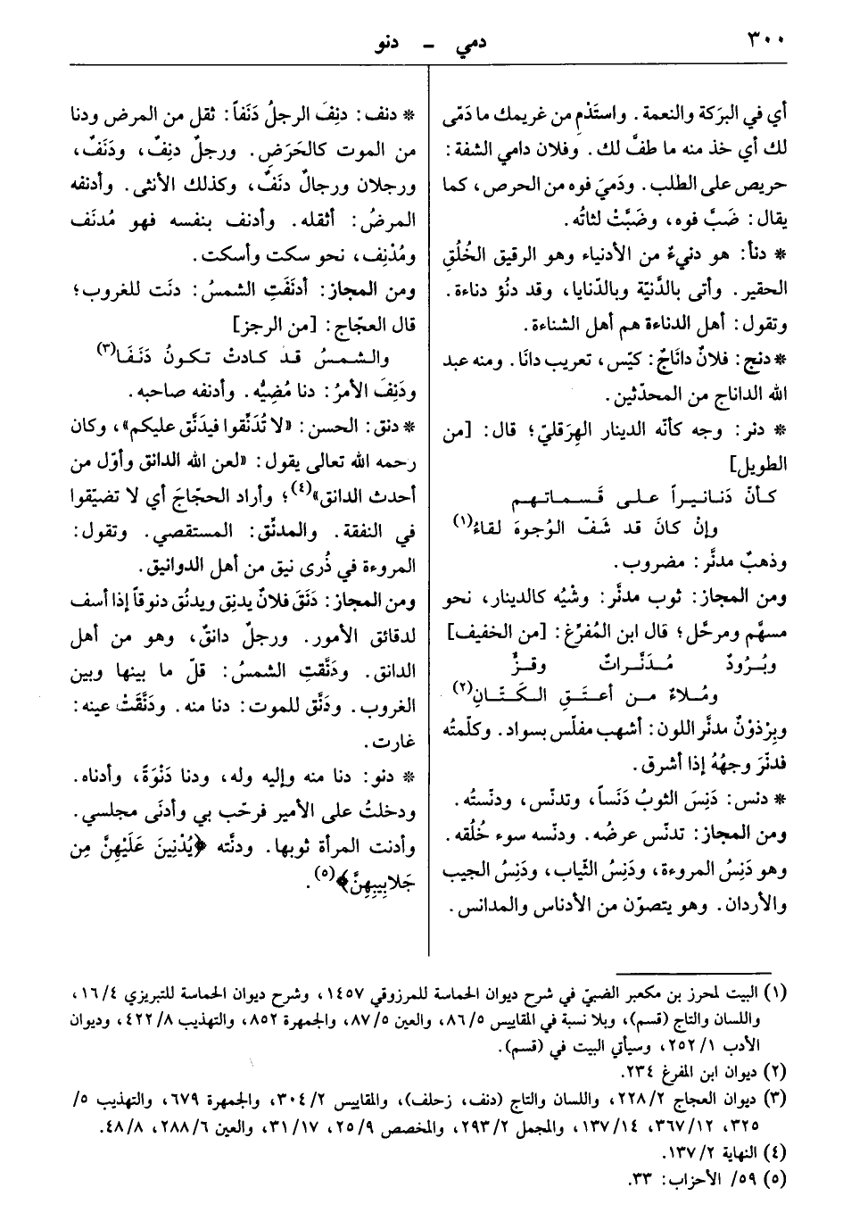 أي في البركة والنعمة. واستدم من غريمك ما دمّى لك أي خذ منه ما طفّ لك. وفلان دامي الشفة: حريص على الطلب. ودميَ فوه من الحرص، كما يقال: ضبّ فوه، وضبت لثاته.