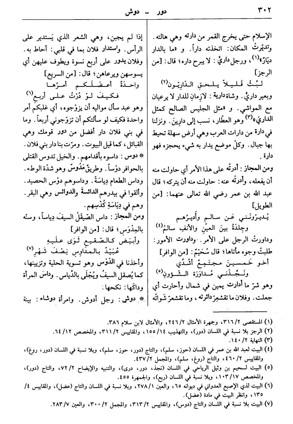 وهو شر ما أدارت يمين في شمال وأحارت أي جعلت. وفلان ما تقشعر دائرته، وما تقشعر شواته إذا لم يجبن، وهي الشعر الذي يستدير على الرأس. واستدار فلان بما في قلبي: أحاط به. وفلان يدور على أربع نسوة ويطوف عليهن أي يسوسهن ويرعاهن. قال: