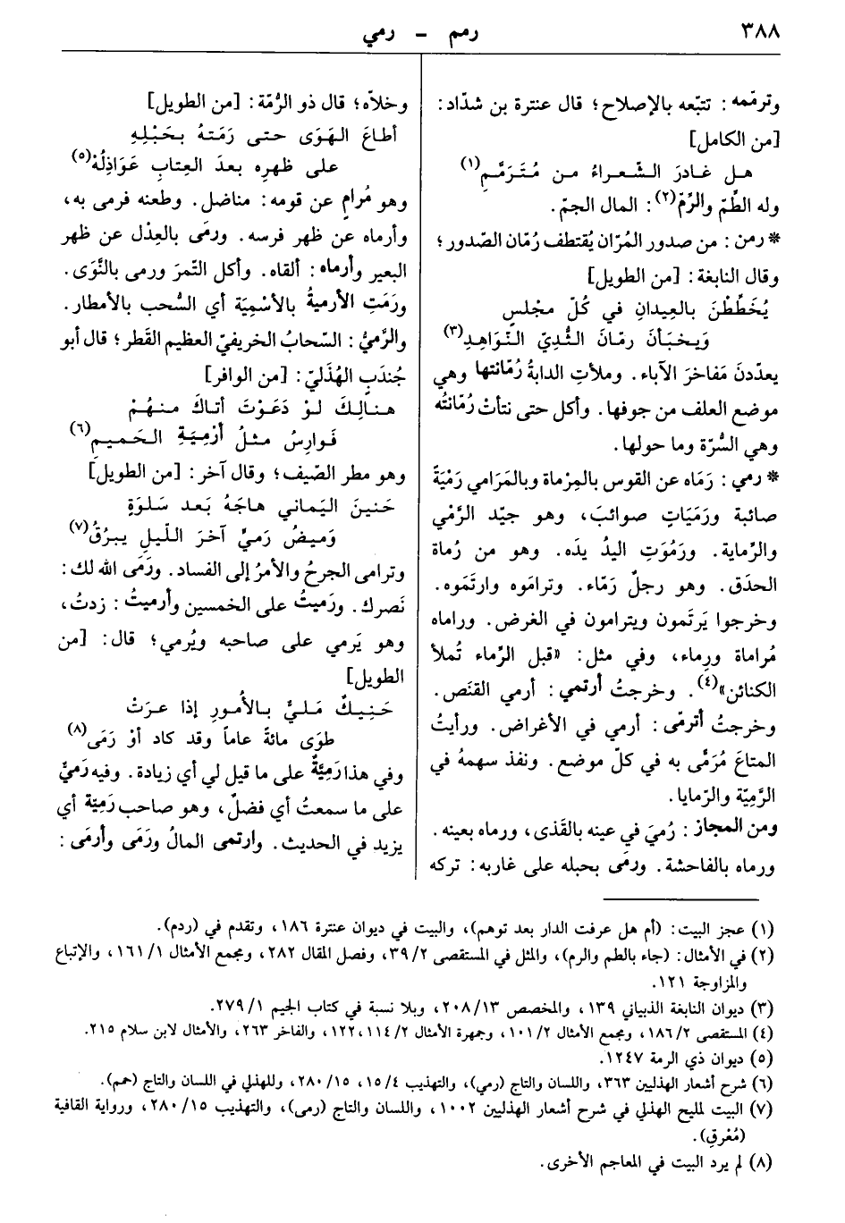 وترمّمه: تتبعه بالإصلاح. قال عنترة بن شدّاد: