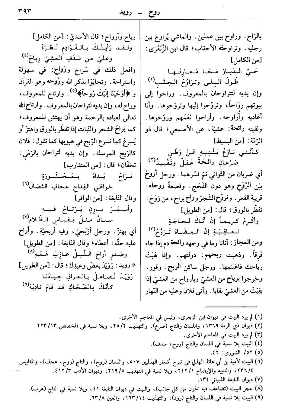 وافعل ذلك في سراح ورواح: فس سهولة واستراحة. وتحابوا بذكر الله وروحه وهو القرآن و" أوحينا إليك روحاً " وارتاح للمعروف، وراح له، وإن يديه لتراحان بالمعروف. وارتاح الله تعالى لعباده بالرحمة وهو أن يهتش للمعروف كما يراح الشجر والنبات إذا تفطر بالورق واهتز أو يسرع كما تسرع الريح في هبوبها كما تقول: فلان كالريح المرسلة. وإن يديه لتراحان بالرمي: تخفّان. قال: