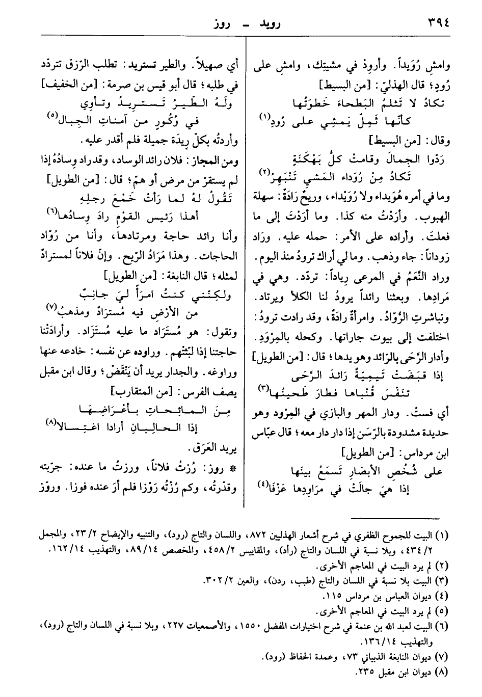 وما في أمره هويداء ولا رويداء، وريح رادة: سهلة الهبوب. وأردت منه كذا. وما أردت إلى ما فعلت. وأراده على الأمر: حمله عليه. وراد روداناً: جاء وذهب. ومالي أراك ترود منذ اليوم. وراد النعم في المرعى رياداً: تردّد. وهي في مرادها. وبعثنا رائداً يرود لنا الكلأ ويرتاد. وتباشرت الرواد. وامرأة رادة، وقد رادت ترود: اختلفت إلى بيوت جاراتها. وكحلة بالمرود. وأدار الرحى بالرائد وهو يدها. قال: