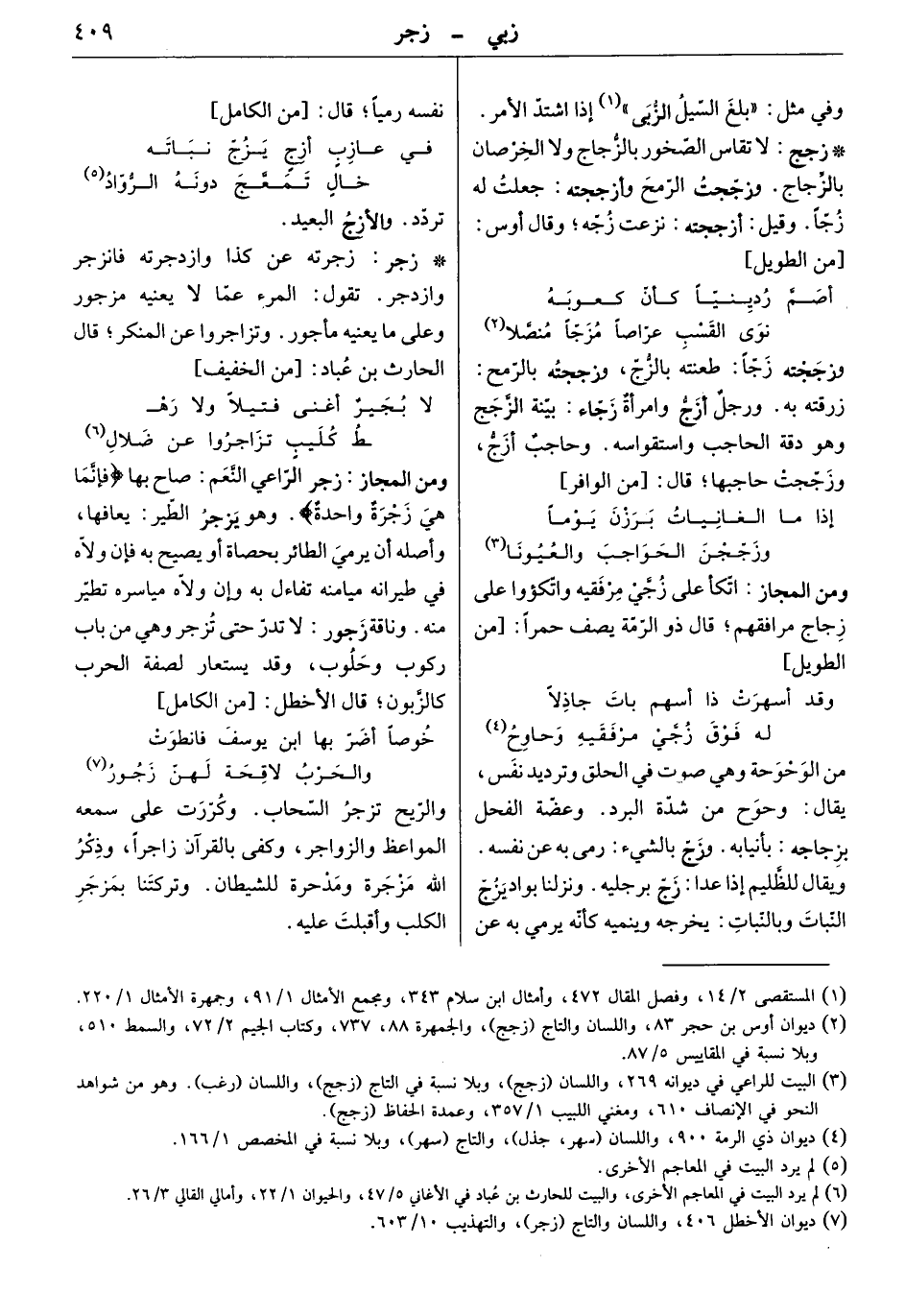 ومن الوحوحة وهي صوت في الحلق وترديد نفس، يقال: وحوح من شدة البرد. وعضه الفحل لزجاجه: بأنيابه. وزج بالشيء: رمى به عن نفسه. ويقال للظليم إذا عدا: زج برجليه. ونزلنا بواد يزج النبات وبالنبات: يخرجه وينميه كأنه يرمى به عن نفسه رمياً. قال: