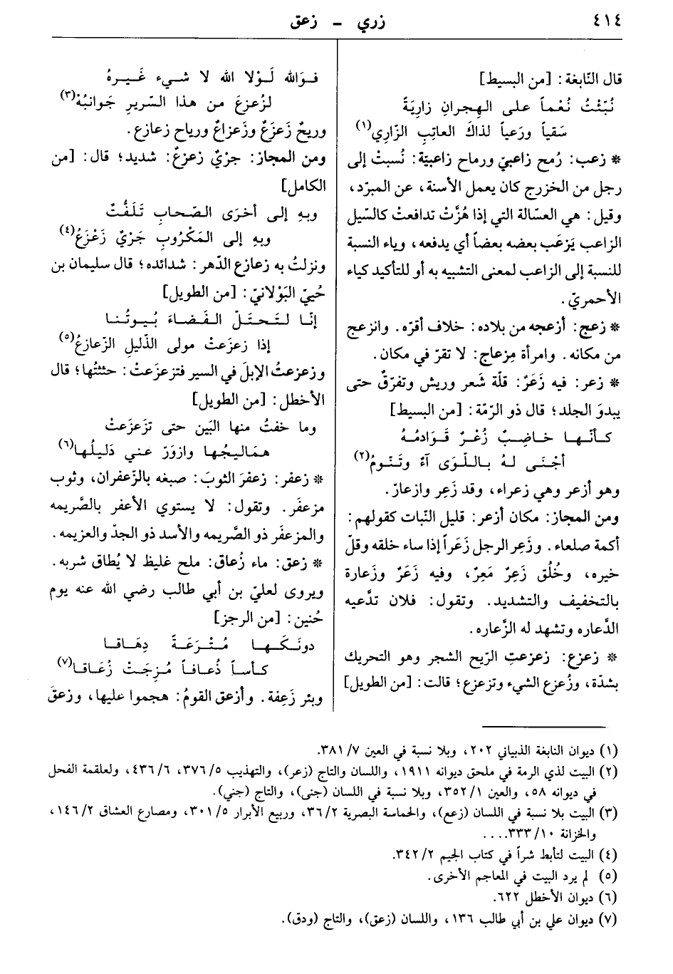 ماء زعاق: ملح غليظ لا يطاق شربه. ويروى لعليّ بن أبي طالب رضي الله تعالى عنه يوم حنين: